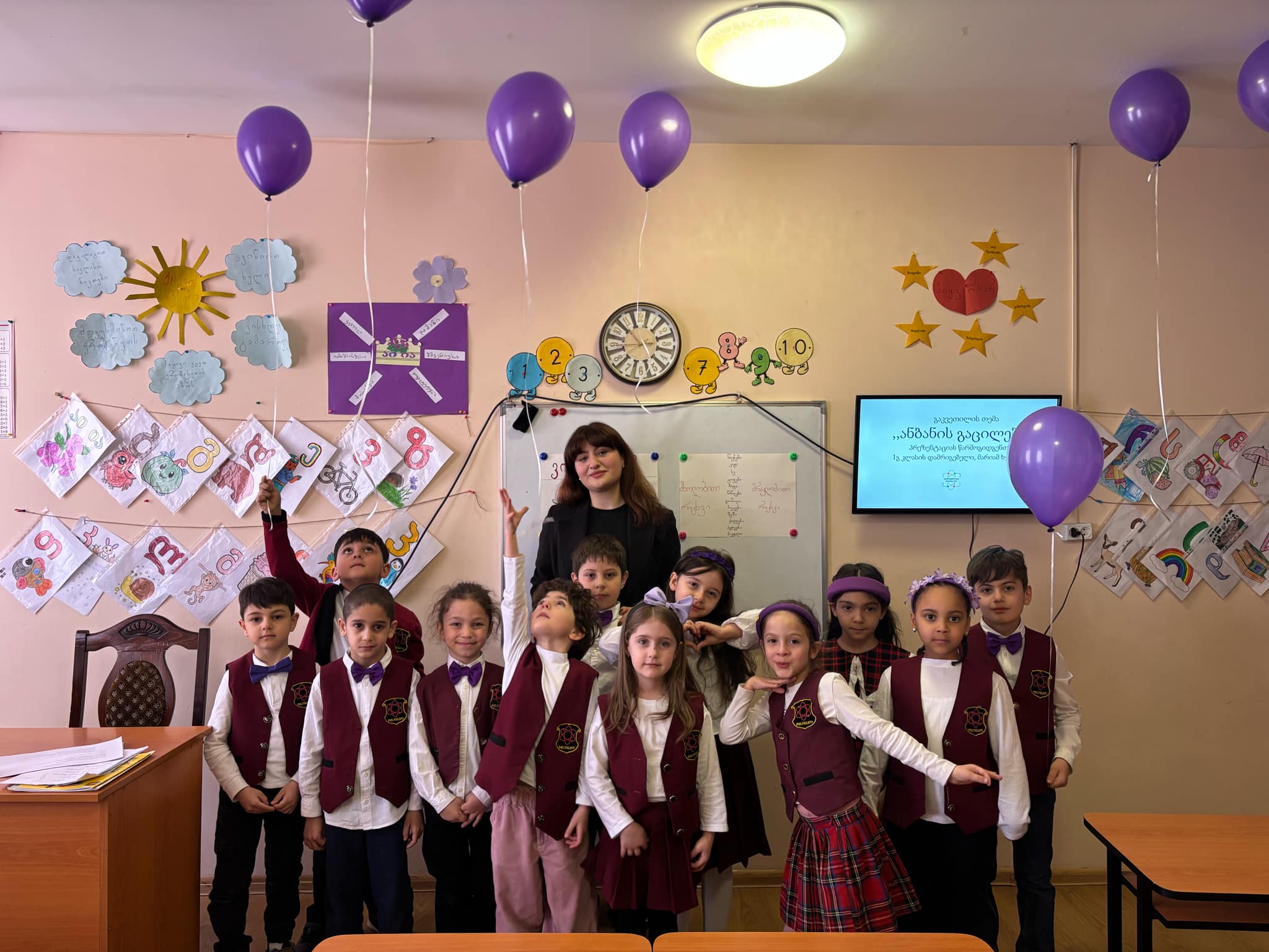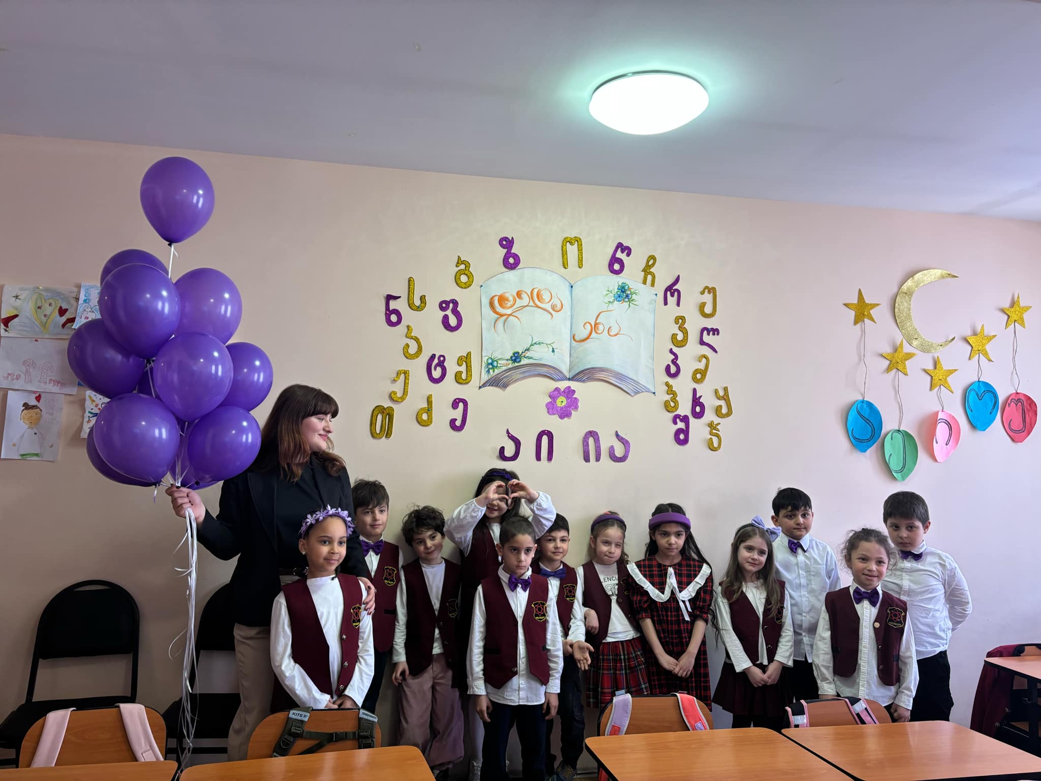 თემატურად მოწყობილ საკლასო ოთახში მოსწავლეებმა შეაჯამეს ნასწავლი მასალა სახალისო აქტივობებით. წაიკითხეს ასო-ბგერებზე ნასწავლი ლექსები და შეასრულეს ანბანზე შექმნილი სიმღერები.